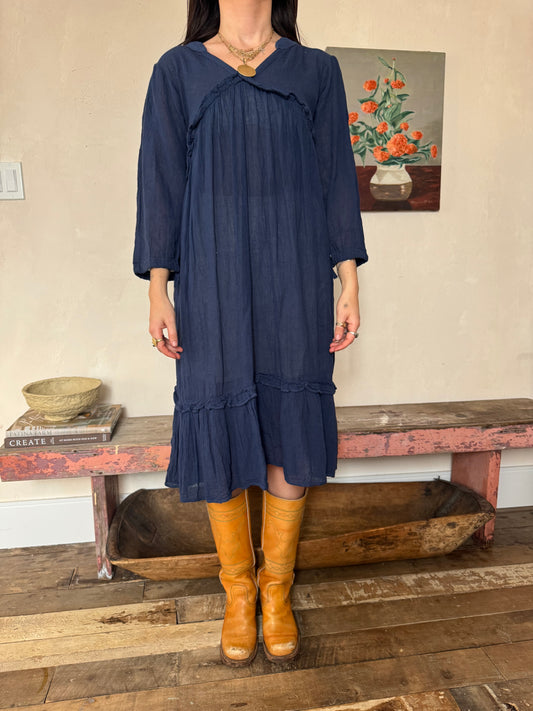 Oaxacan Indigo Long Sleeve Ruffle Dress