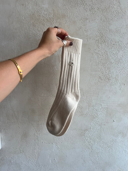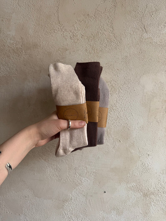 Snow Socks In Beige/Black by Le Bon Shoppe