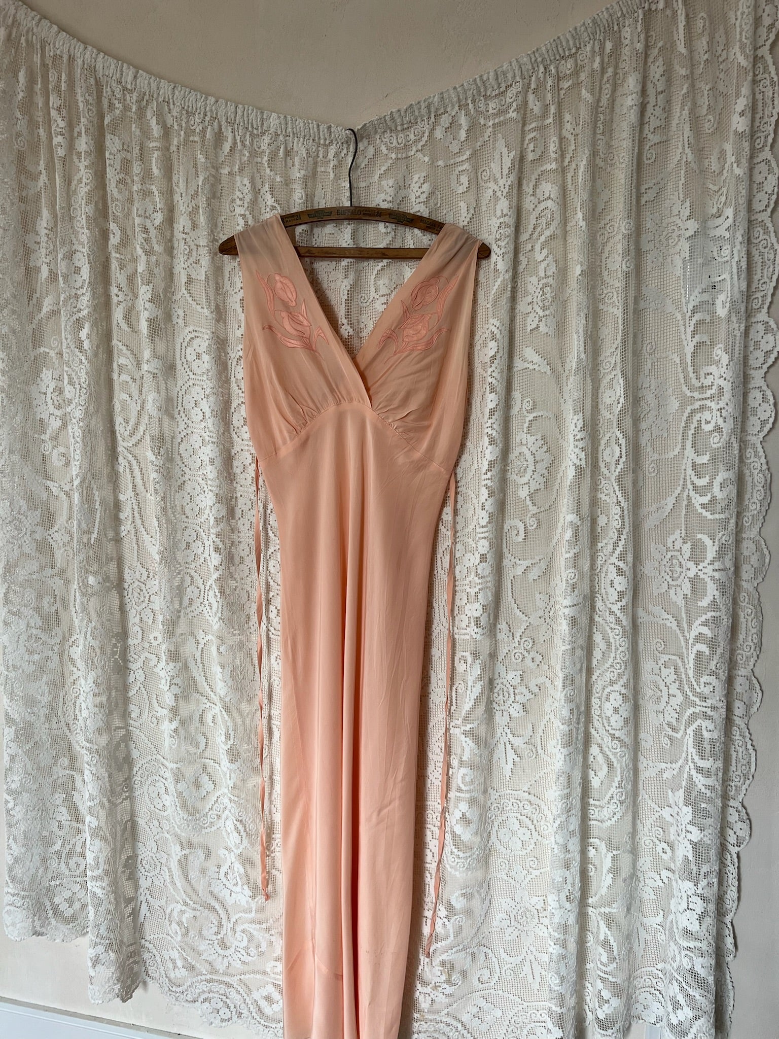 1930s Coral Embroidered Slip