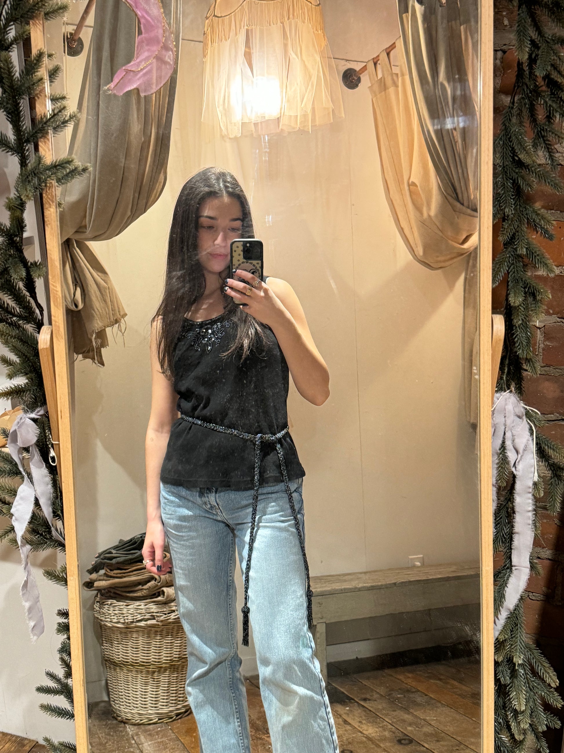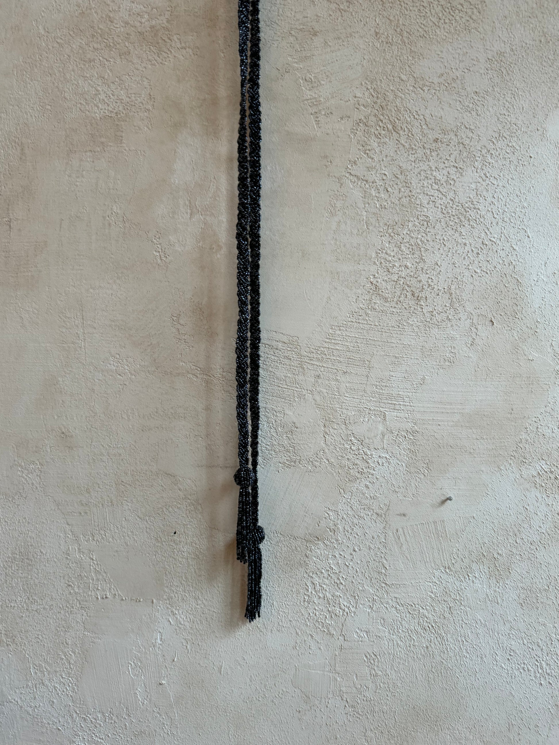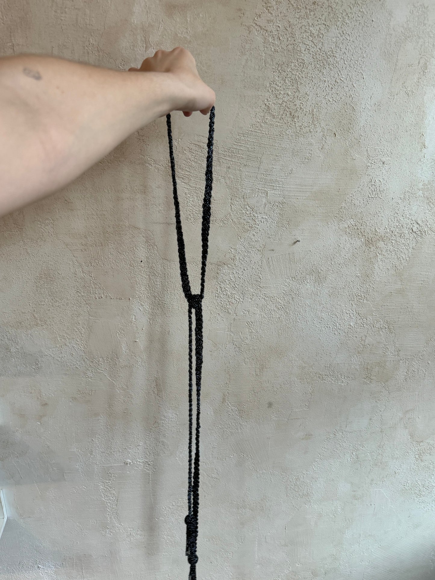 Love this to elevate any outfit! Such a fun little accessory! Black and blue/grey beads!