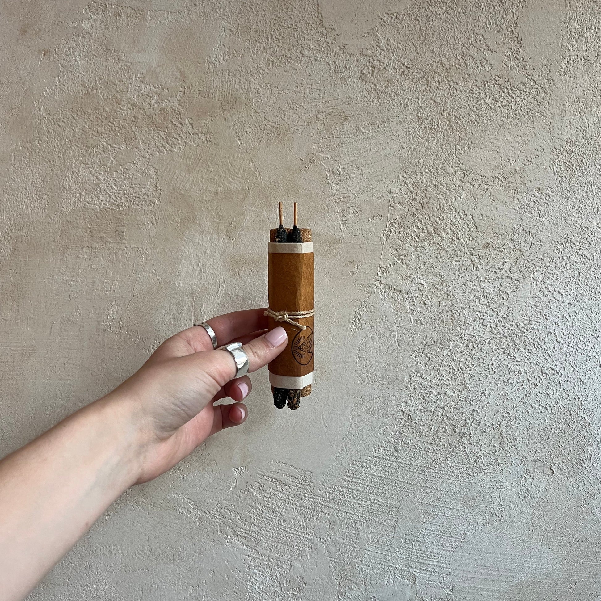 A finely hand-wrapped bundle that features two of our Palo Santo Incenses.