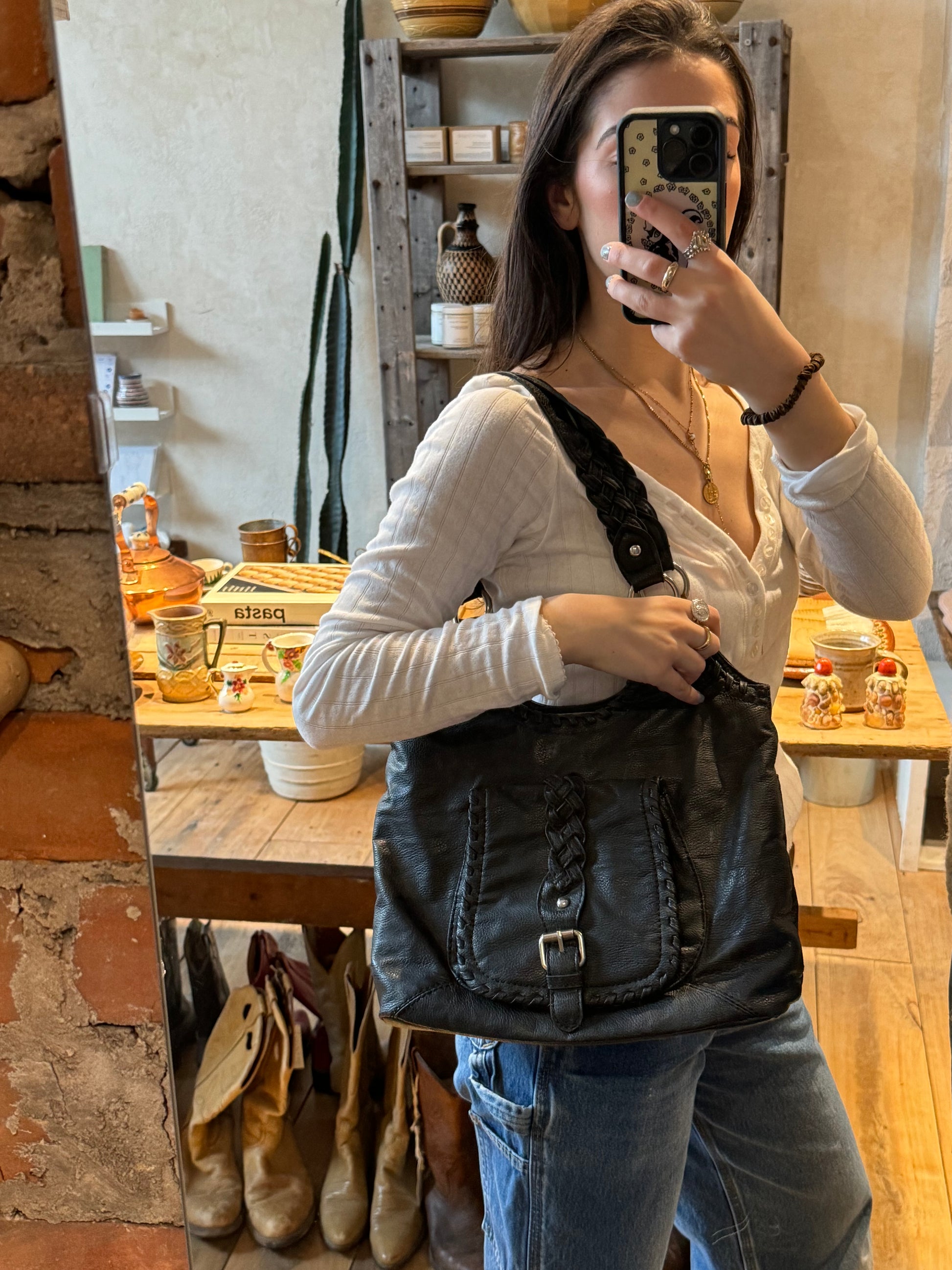 The perfect size shoulder bag for everyday use! Love the braiding details and the big front pocket!