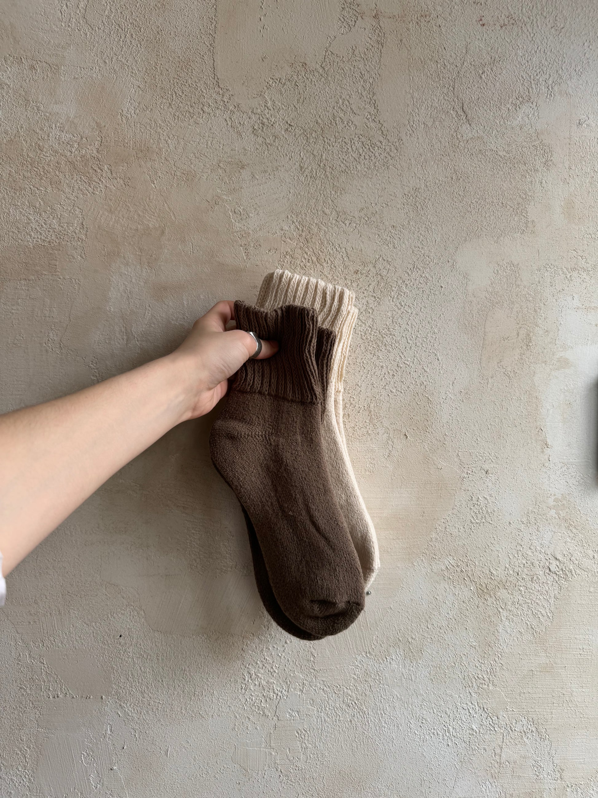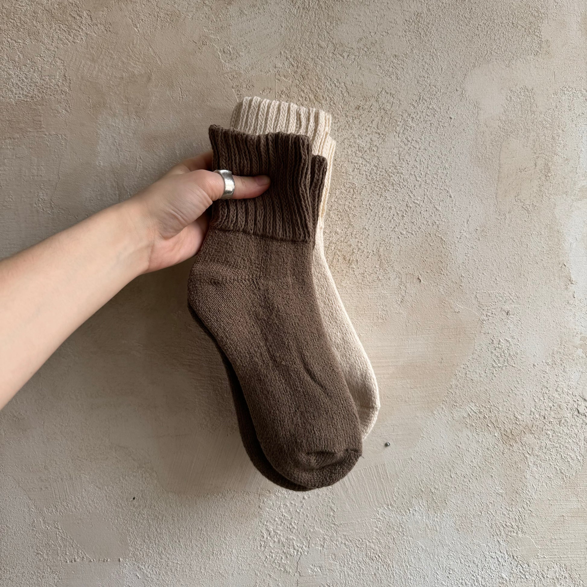 set comes with two pairs of socks / one natural and one taupe :)