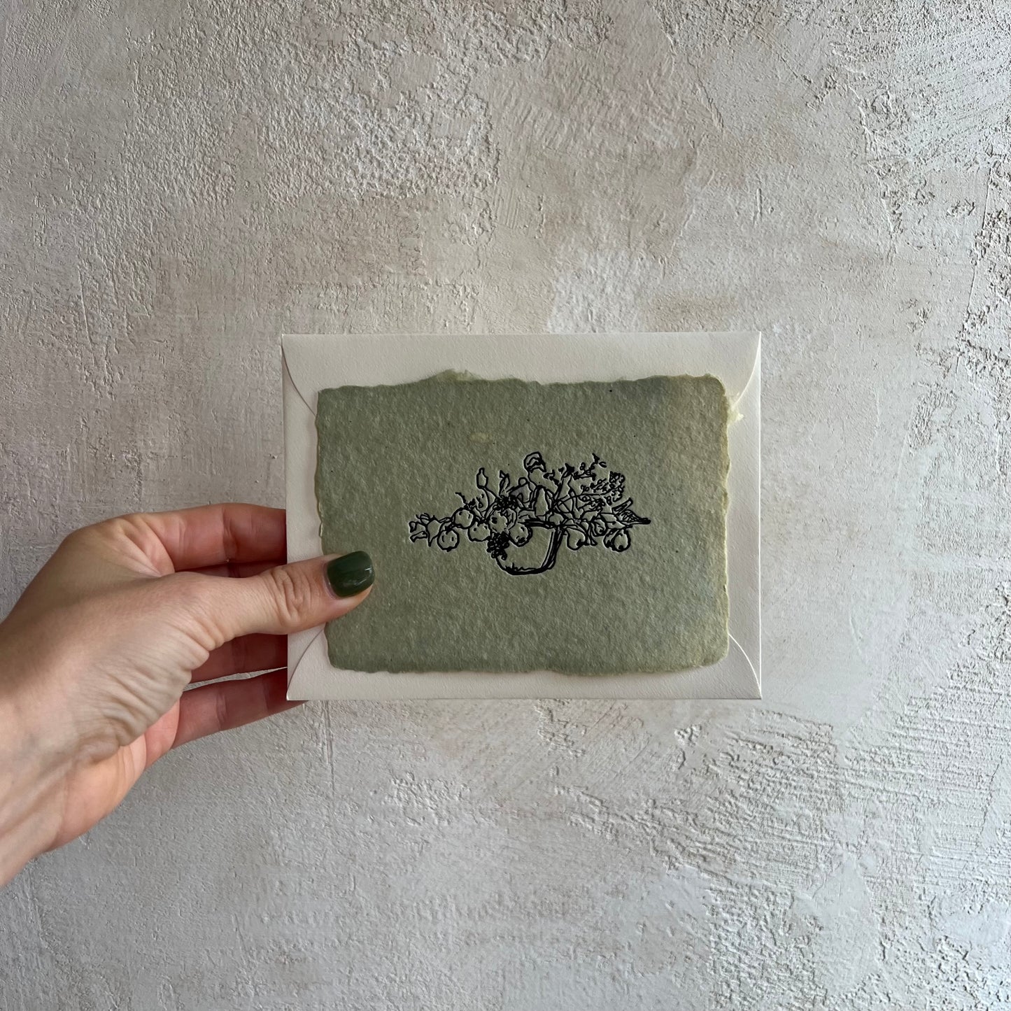 Farmette ~ Our paper is handmade in our California studio using a 17-step process with centuries-old techniques including natural dyeing, hand paper-making and letterpress printing.