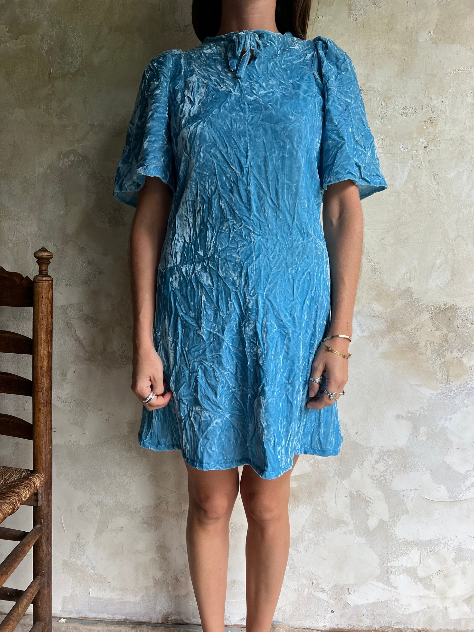 Blue Crushed Velvet Mini Dress