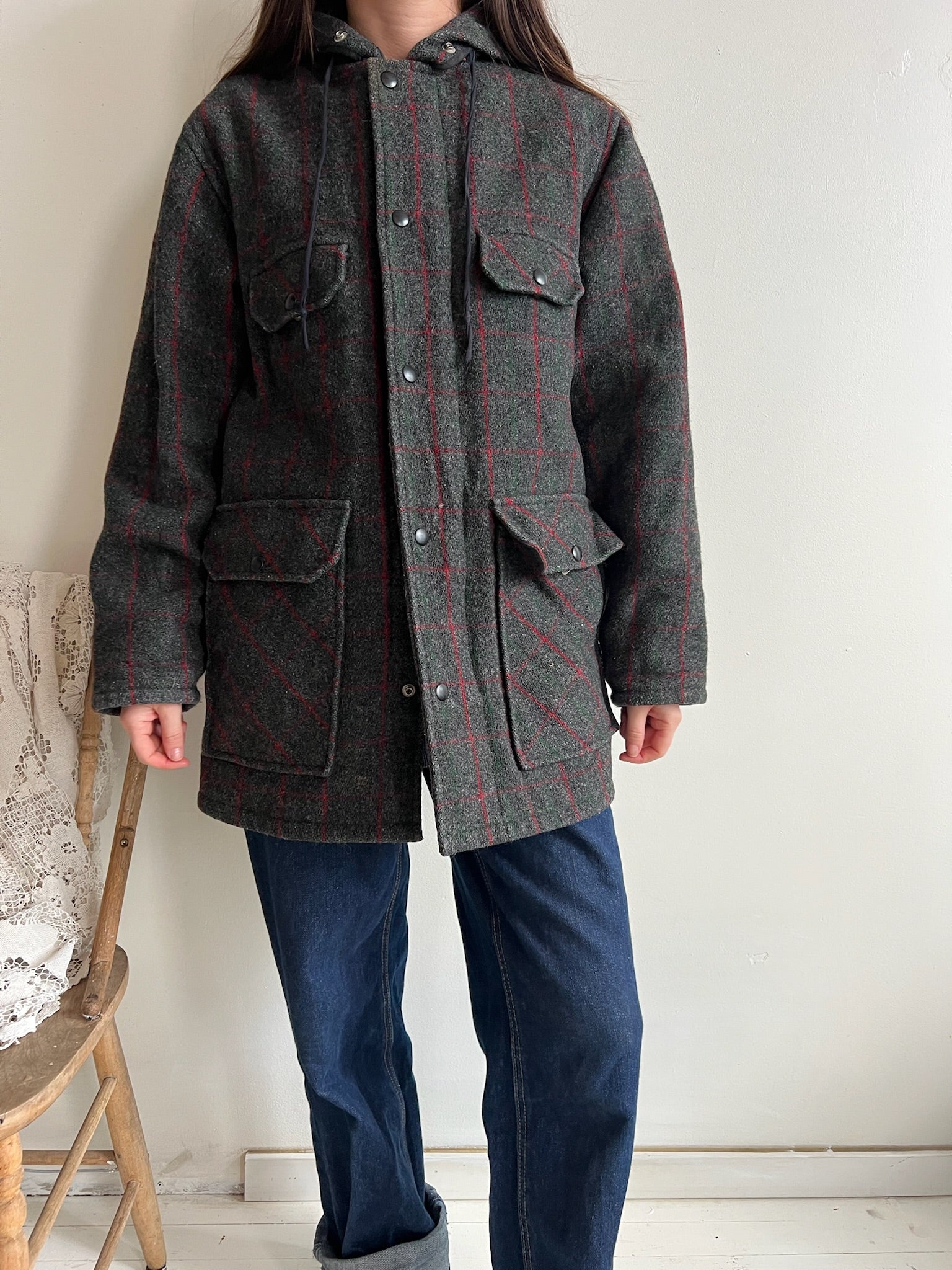 Charcoal Grey Wool Hooded Jacket