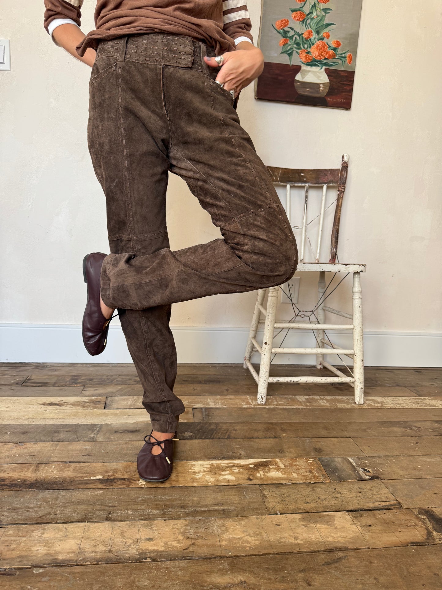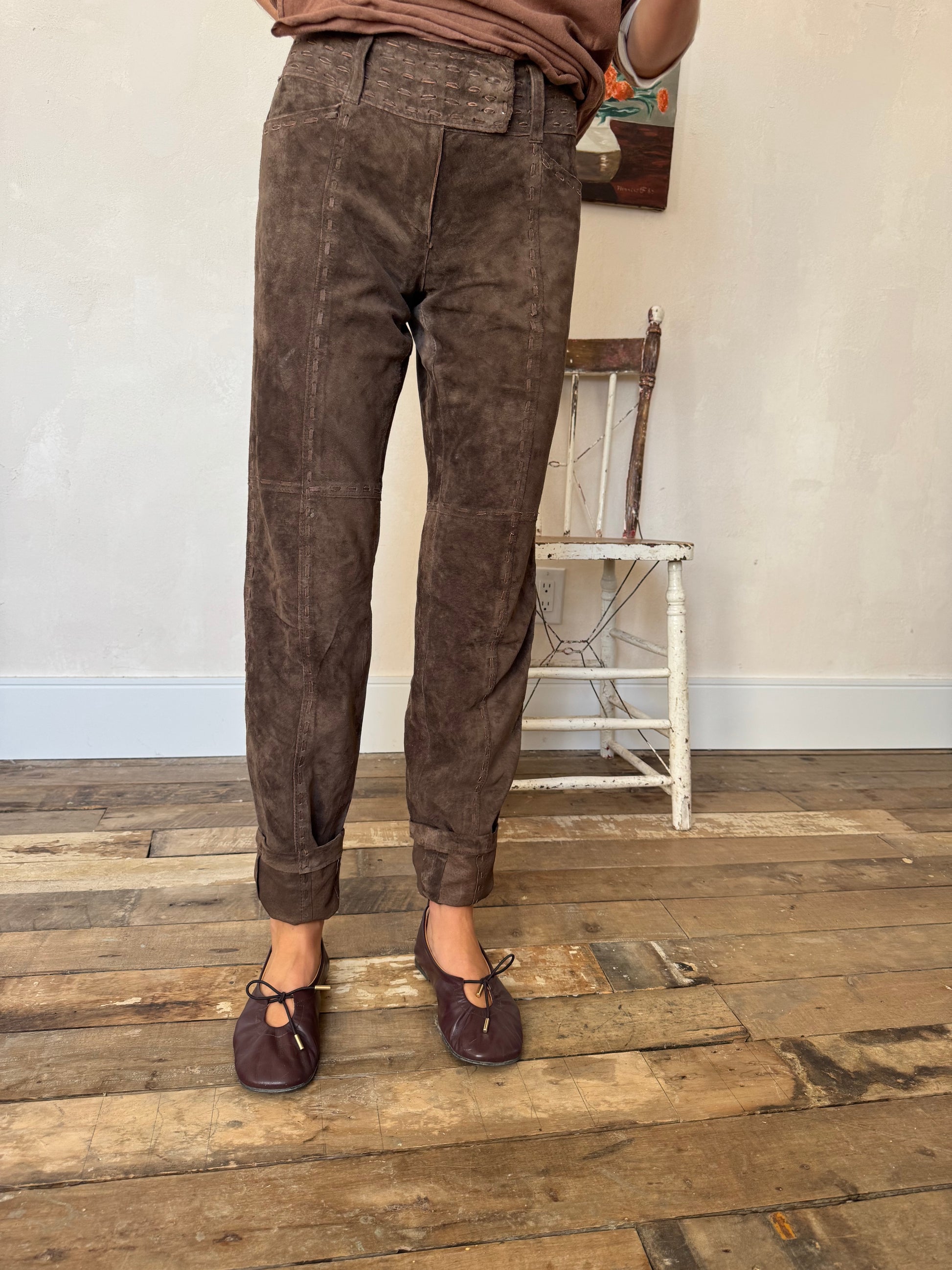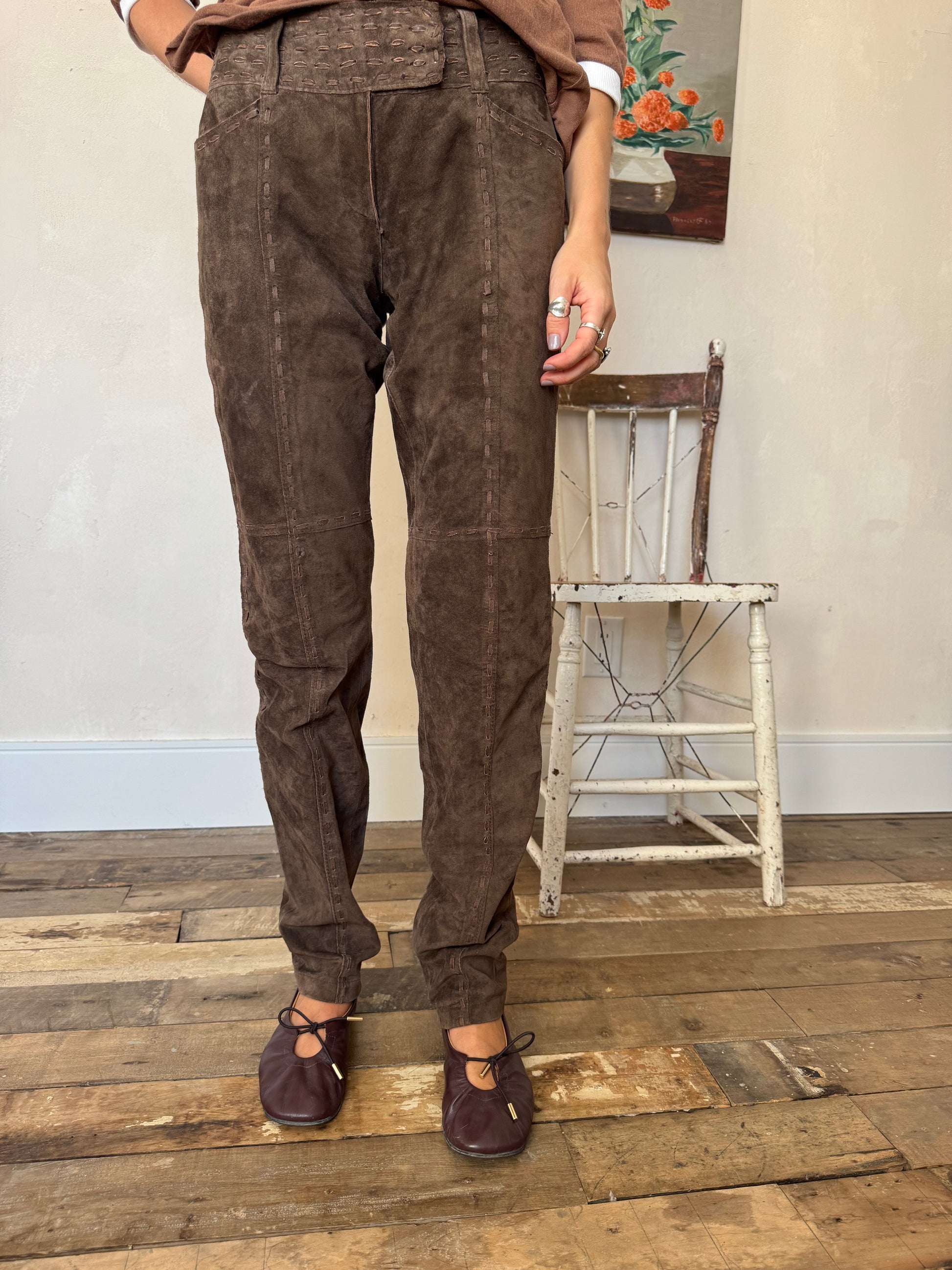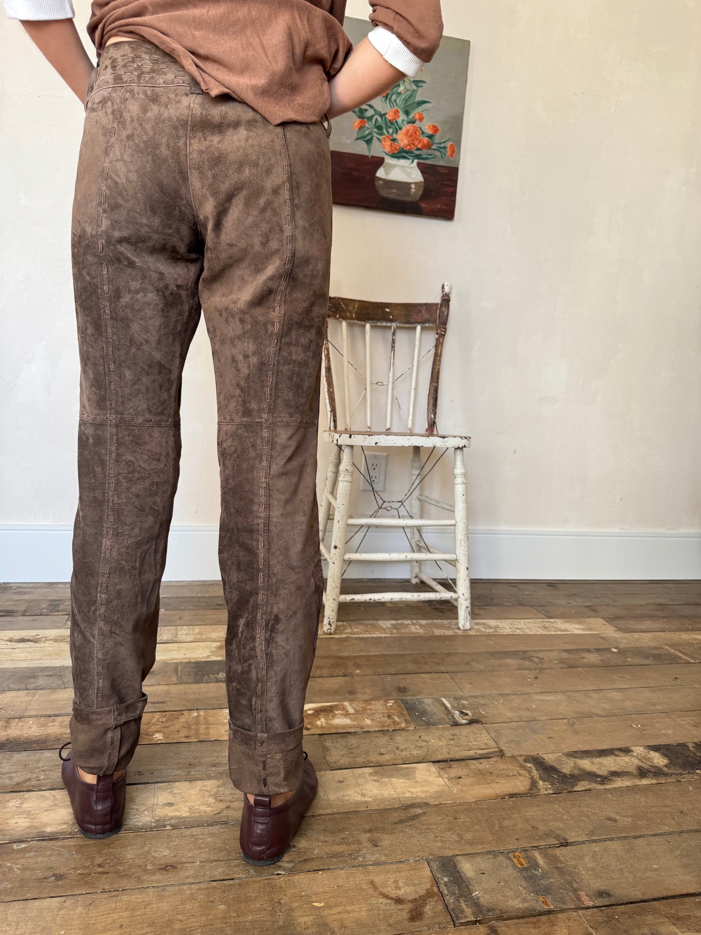Description: Love the stitching details. Pants are lined and have a lower waist. Style is straight-leg.