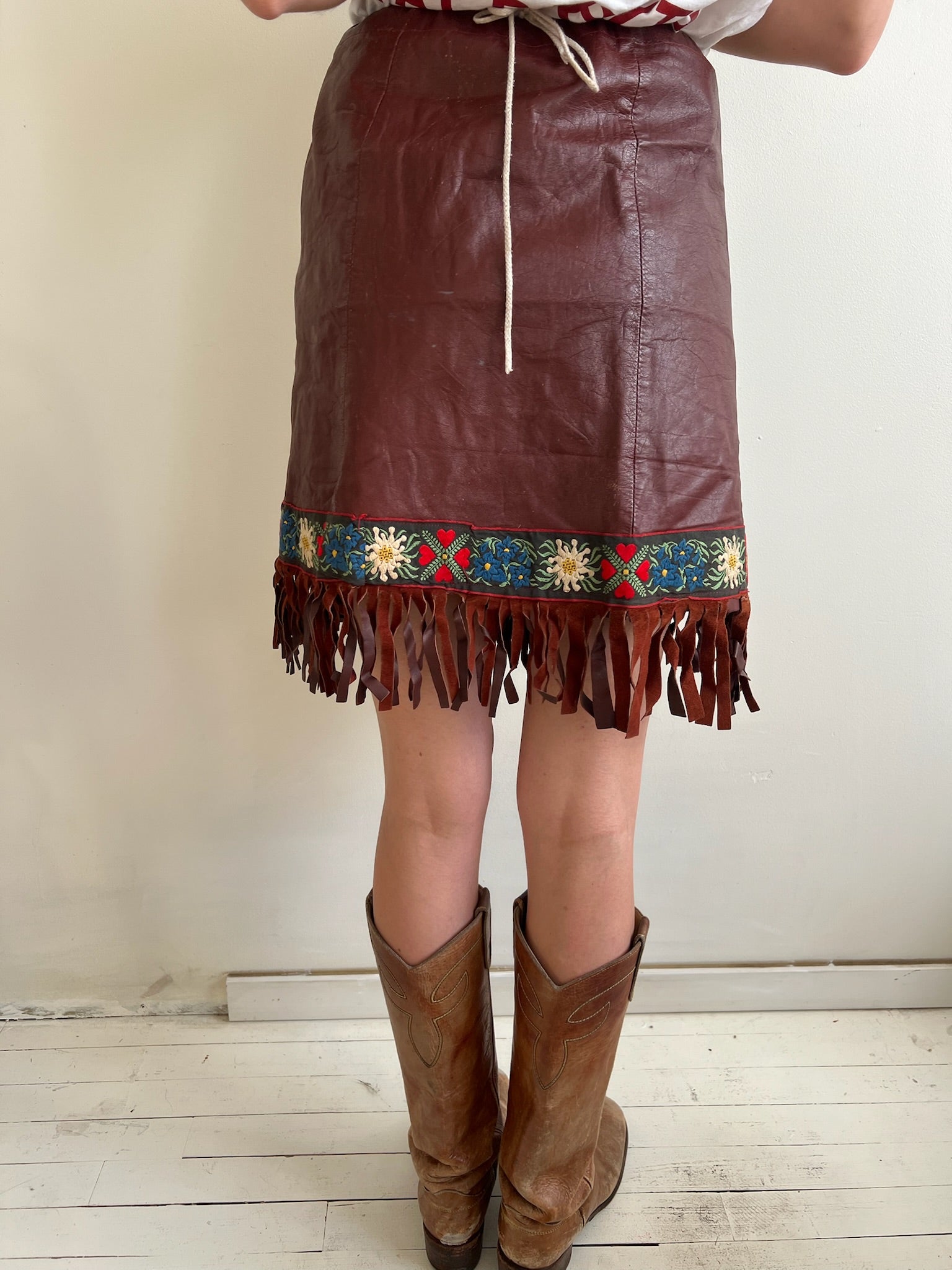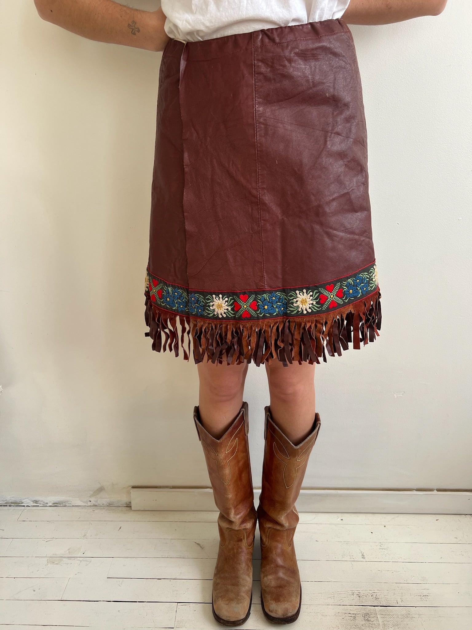 Brown Leather Fringe Wrap Skirt