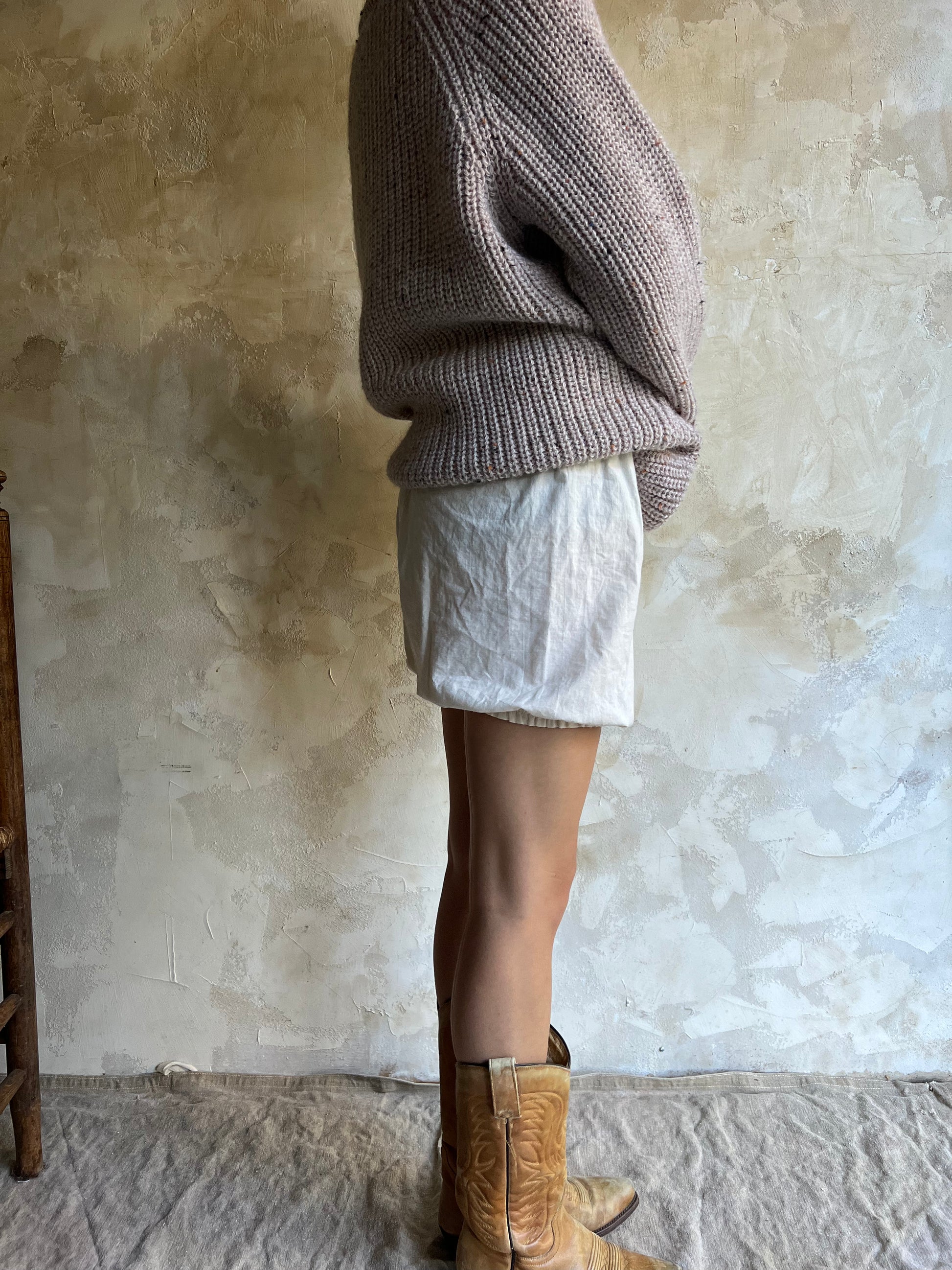 Handmade natural cotton long bloomer with elastic waistband. So sweet paired with a baggy oversized tee + boots!