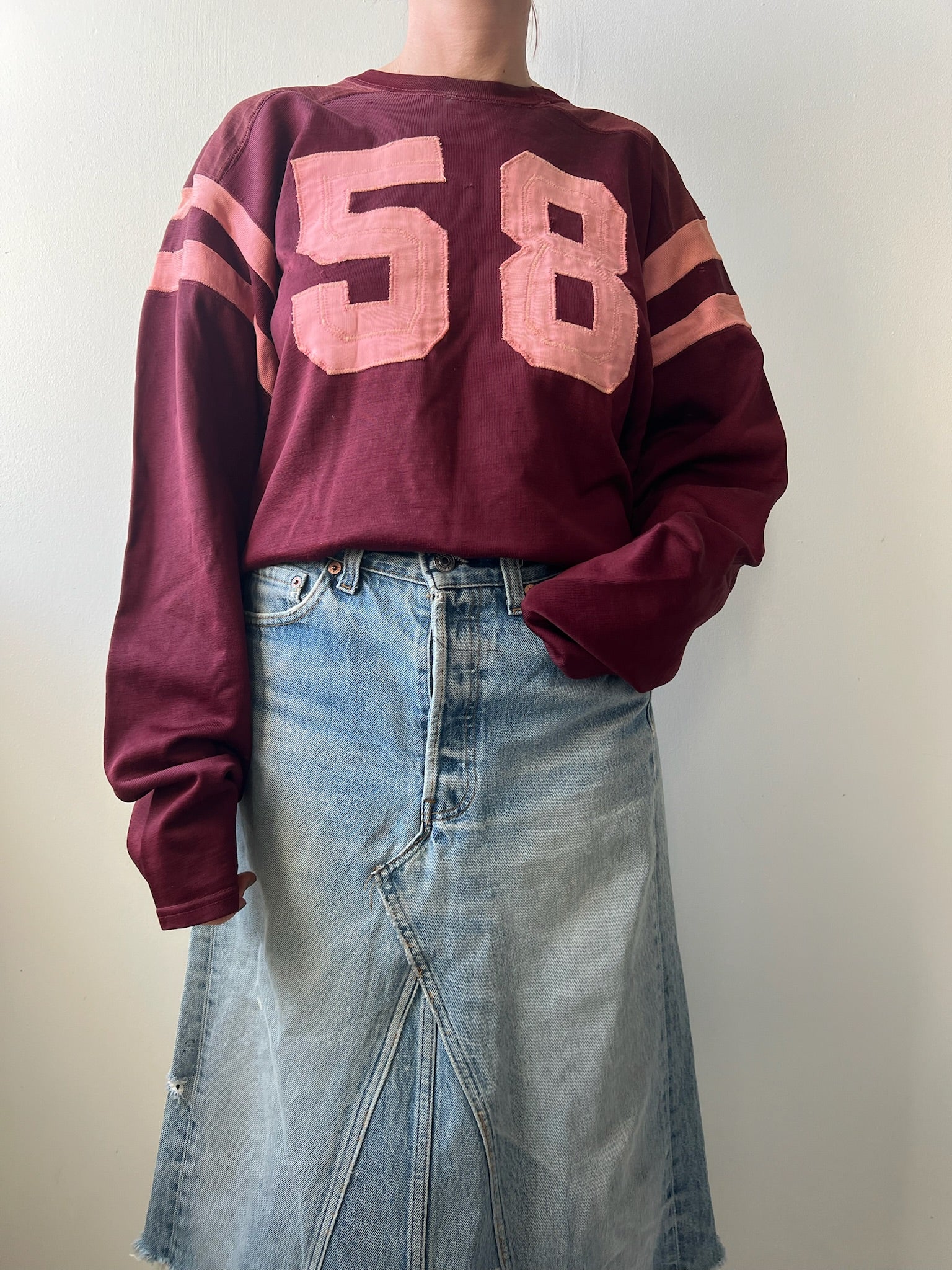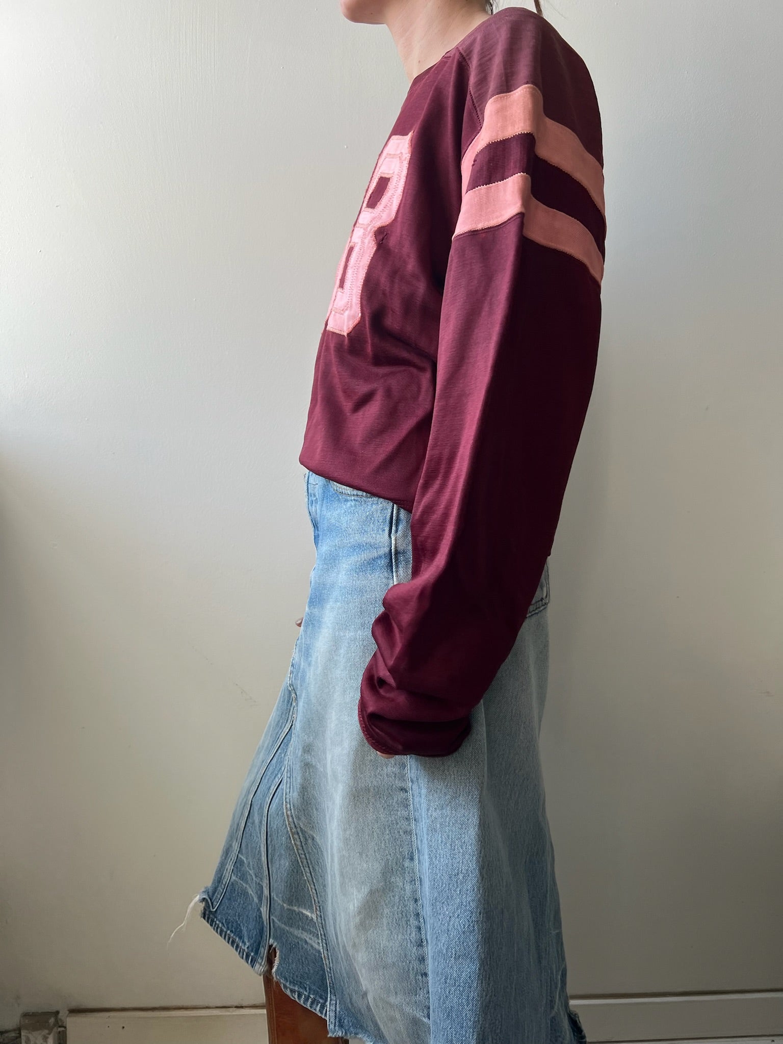 Vintage Maroon + Pink Cropped Football Jersey