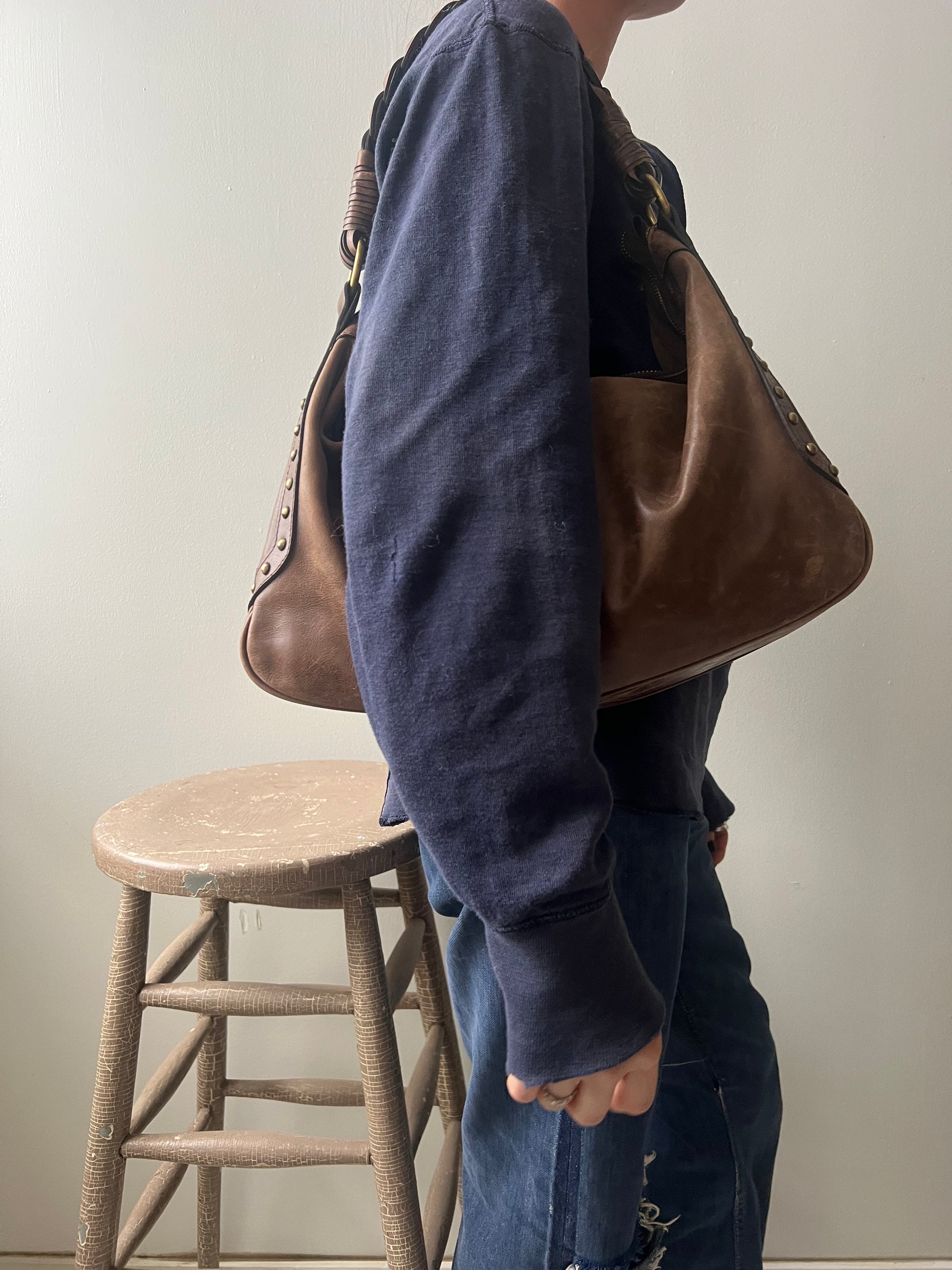 Jimmy Choo Braided Brown Saddle Bag