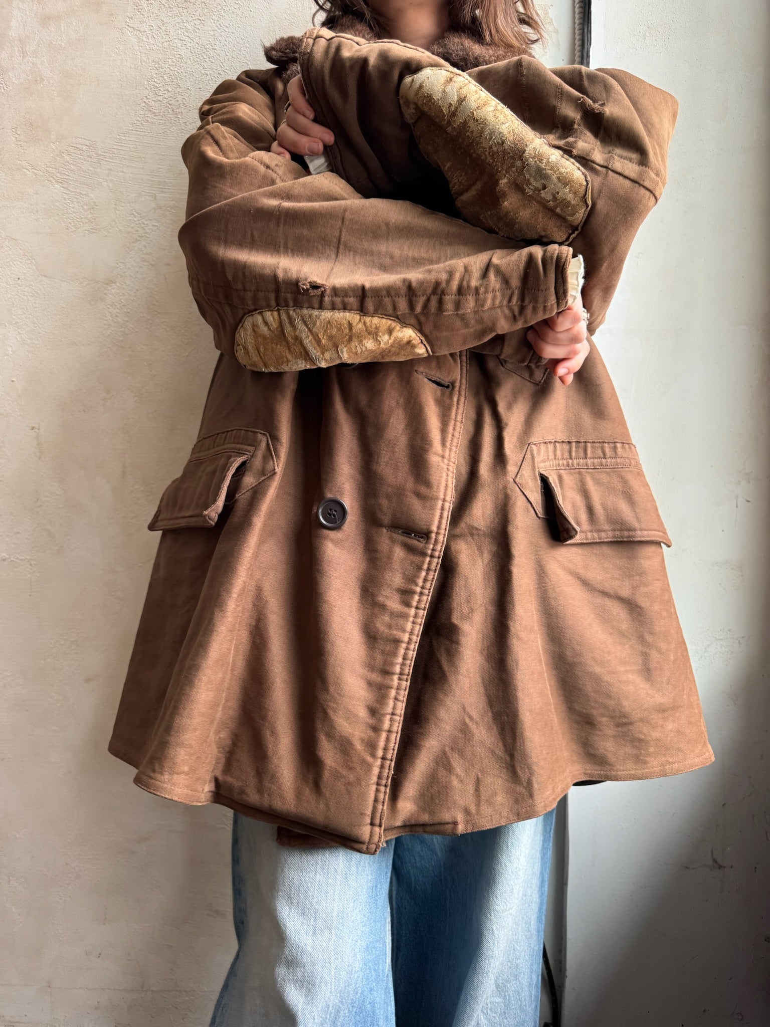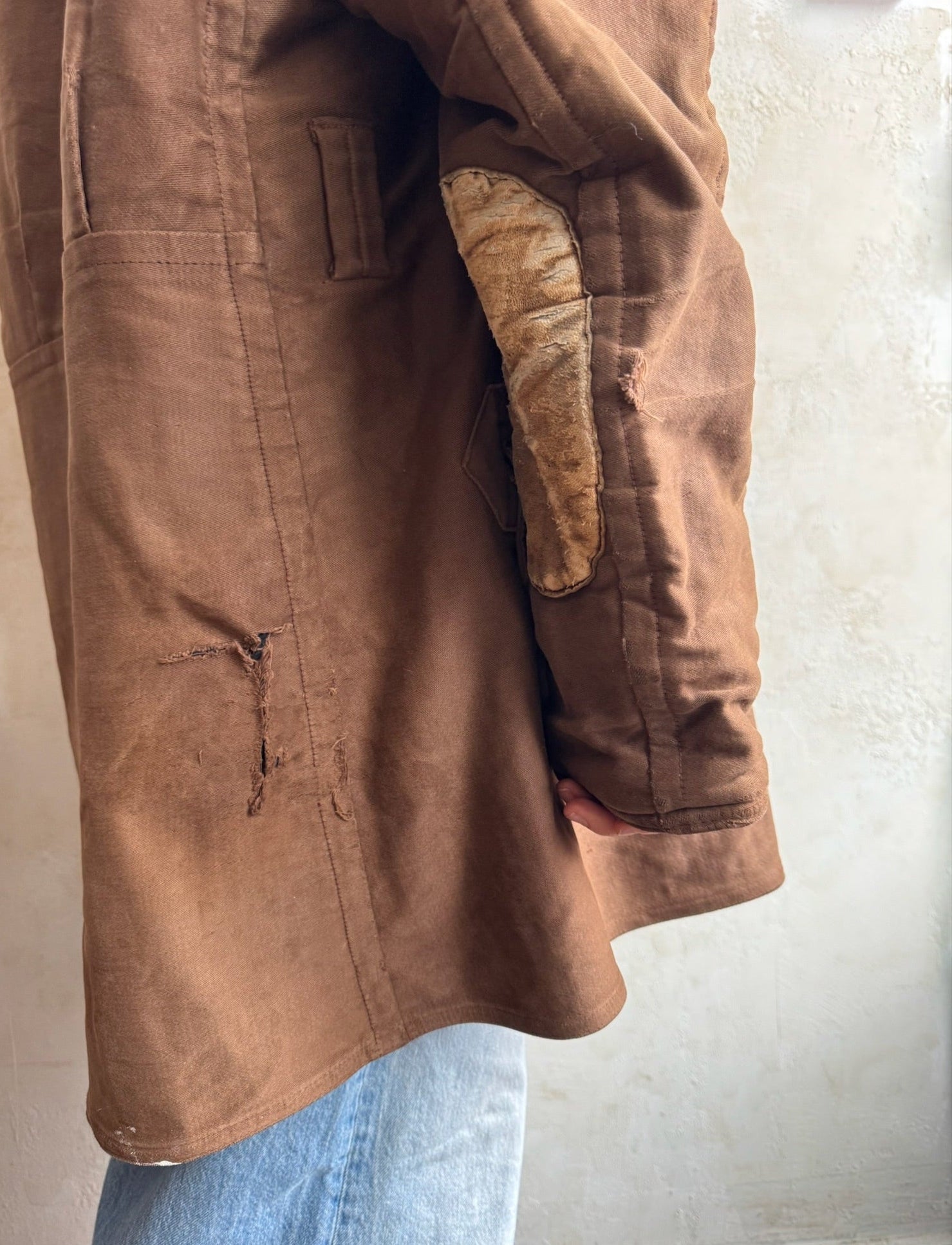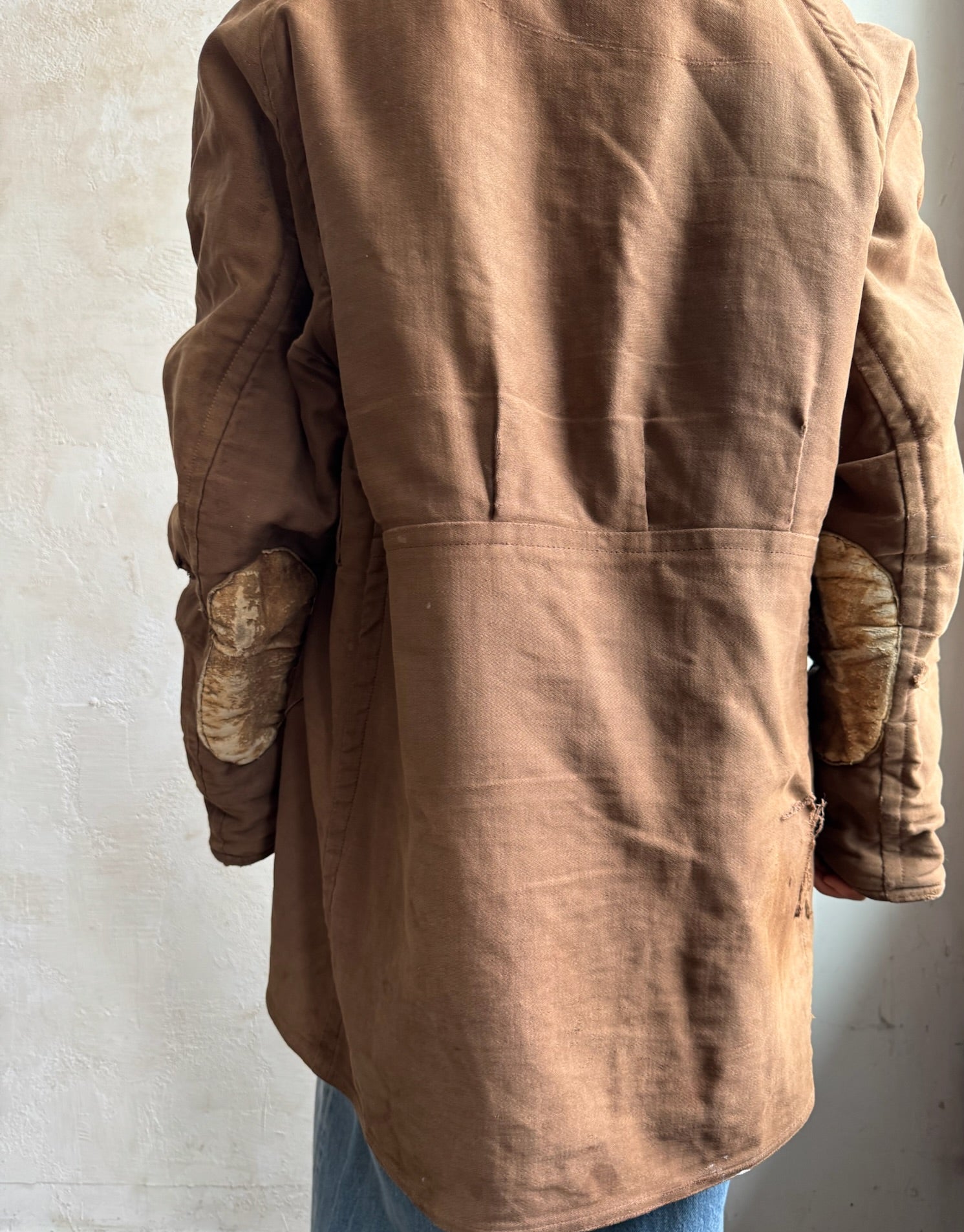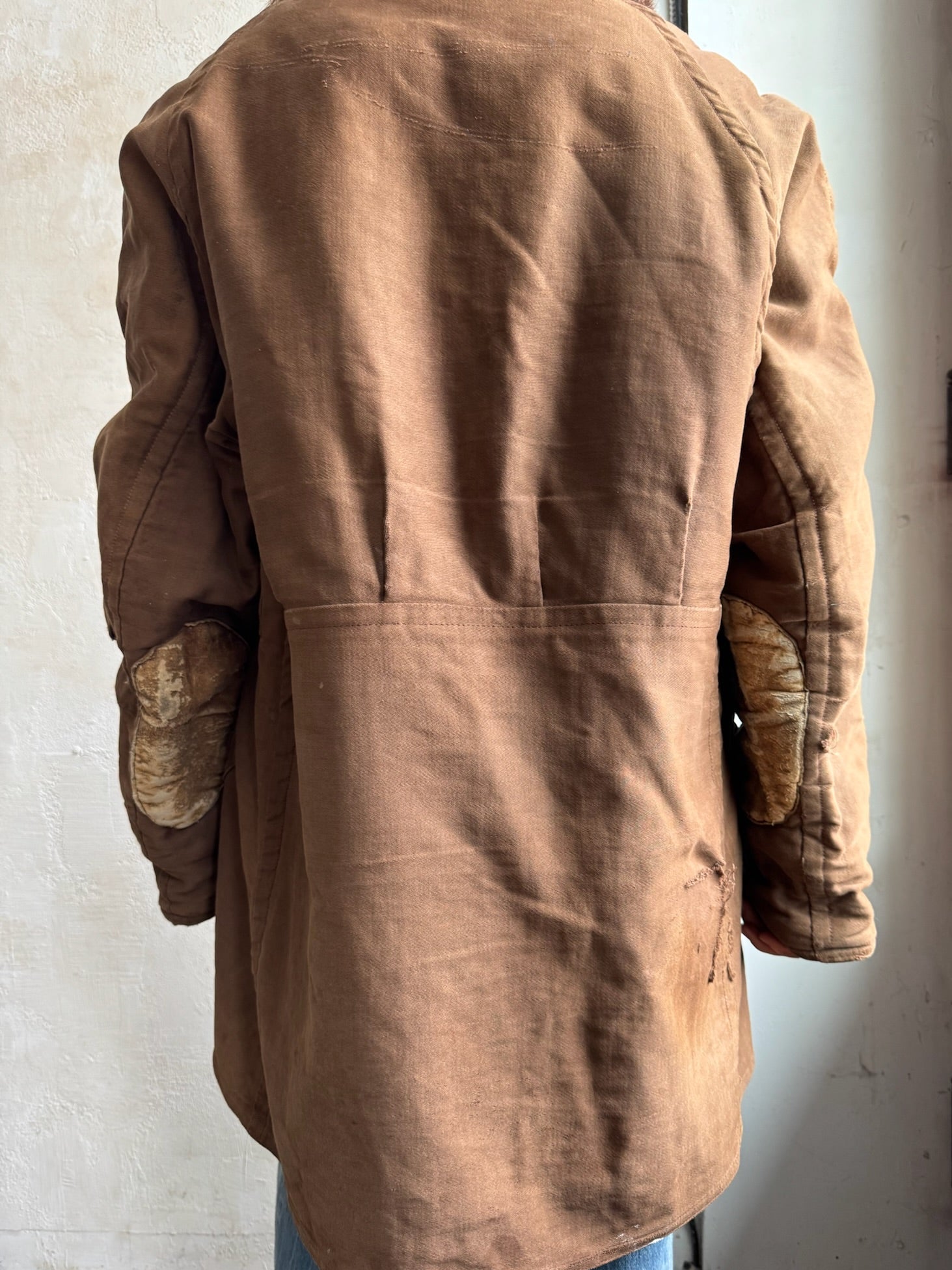 Sooo cool!! Love the cut of this jacket, heavy lining throughout! Mending has been made to the collar lining. Loads of wear on this piece - giving it lots of character! Super cool faded leather elbow patches.