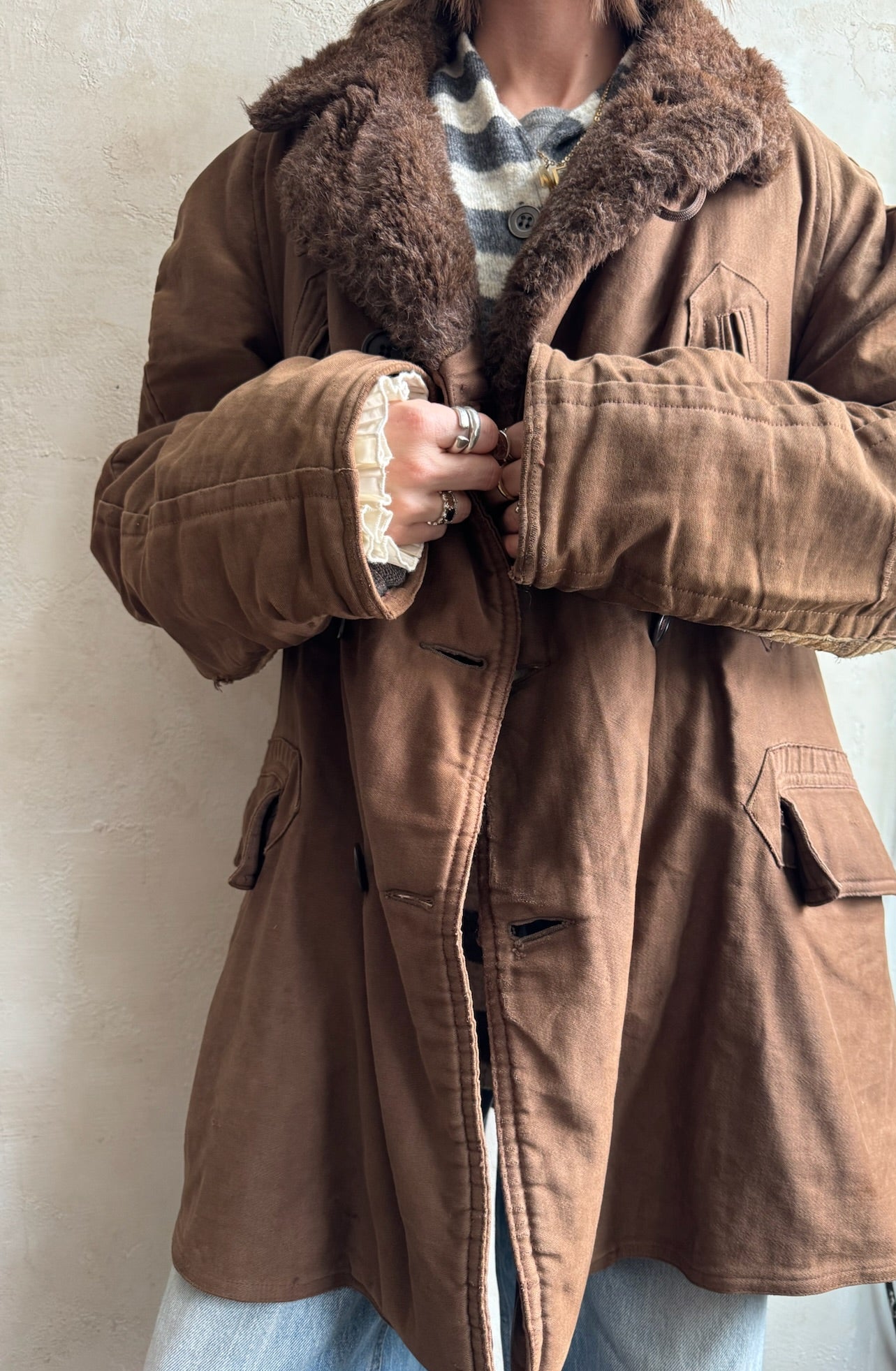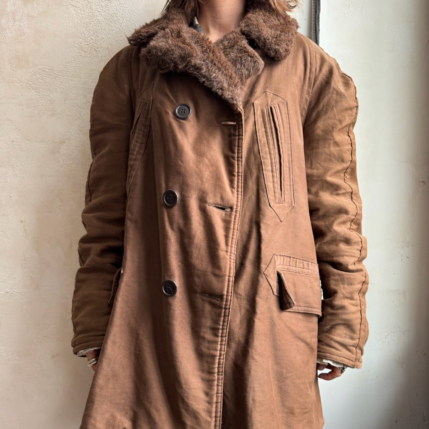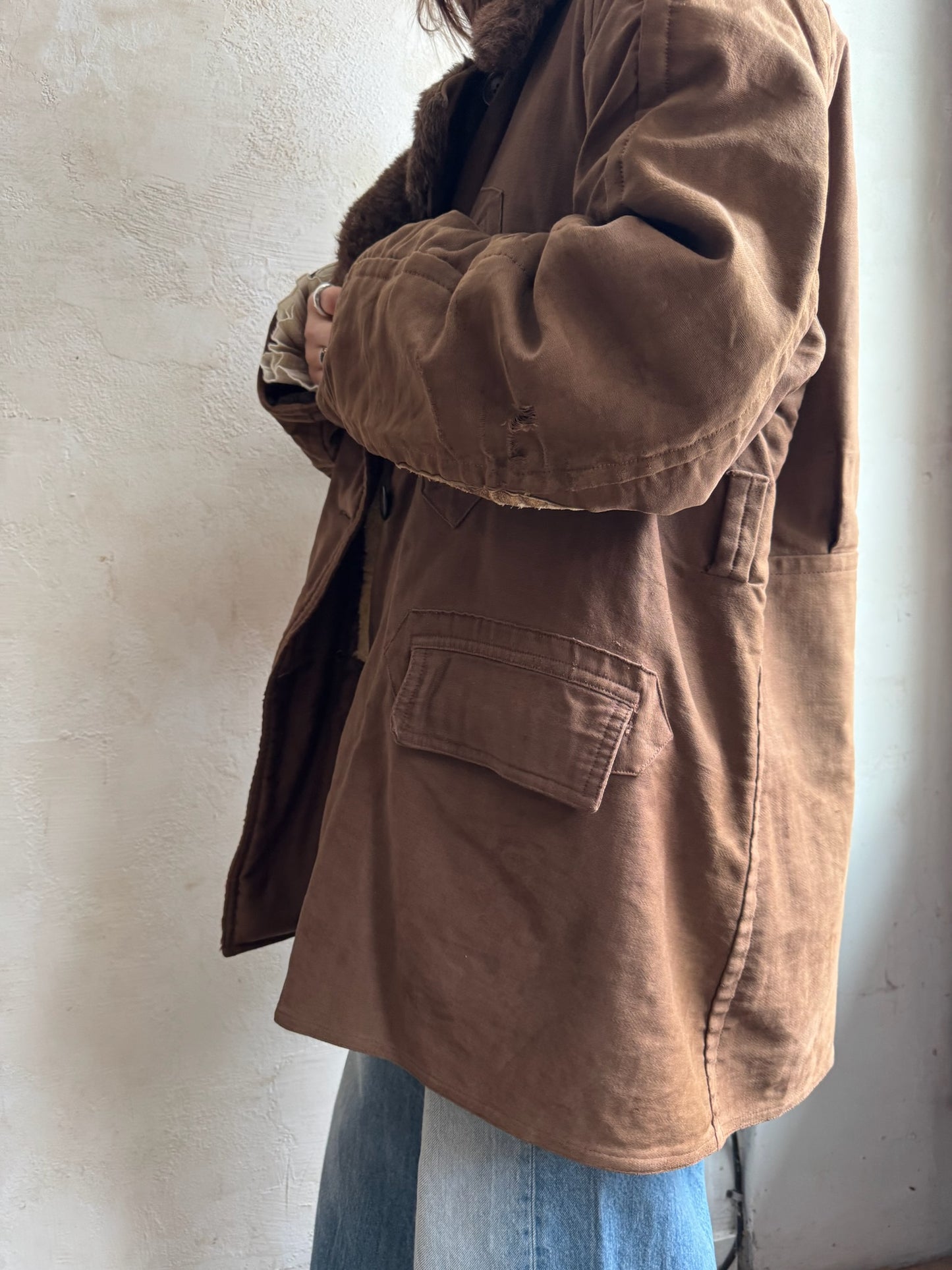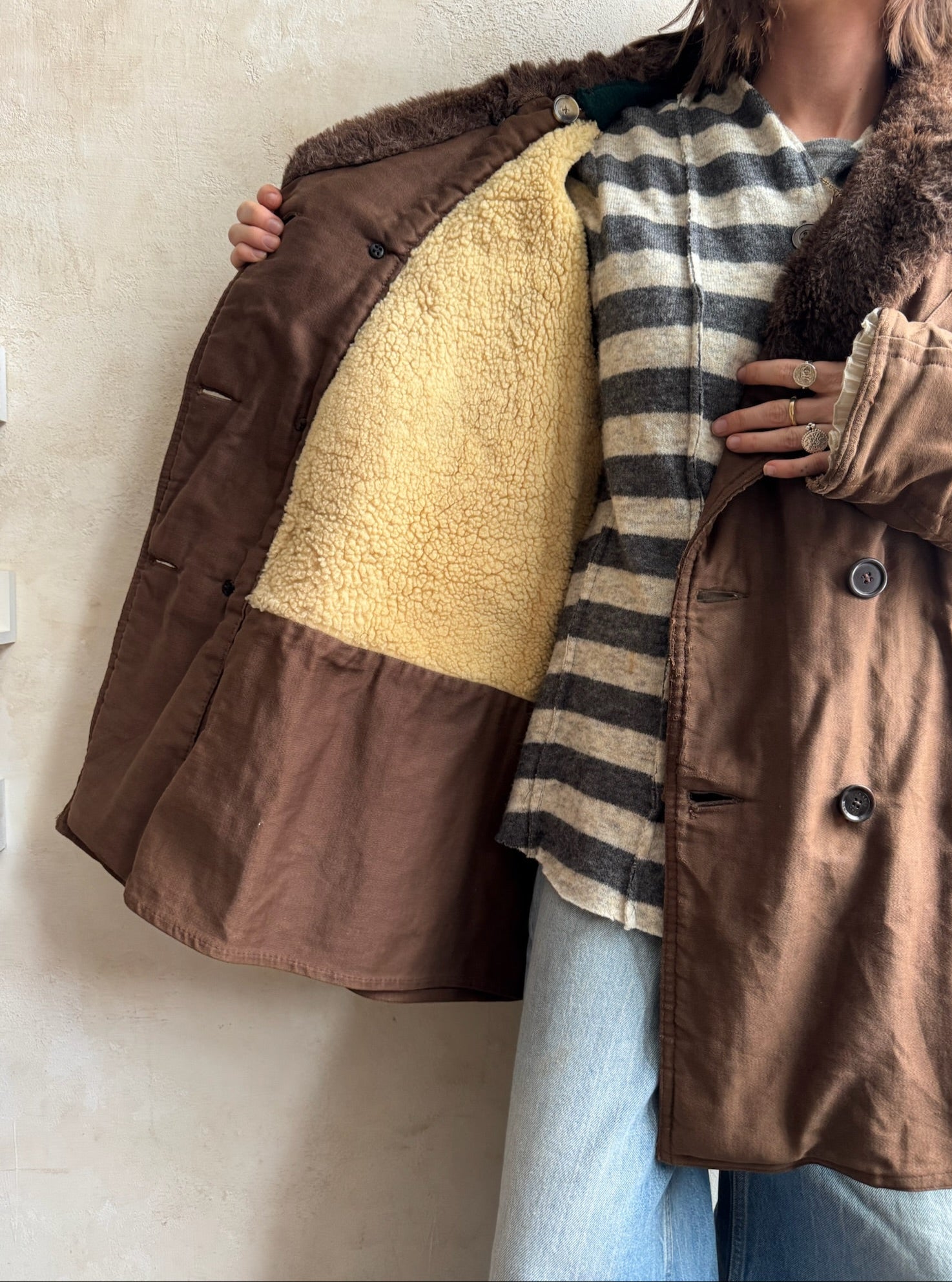 Sooo cool!! Love the cut of this jacket, heavy lining throughout! Mending has been made to the collar lining. Loads of wear on this piece - giving it lots of character! Super cool faded leather elbow patches.