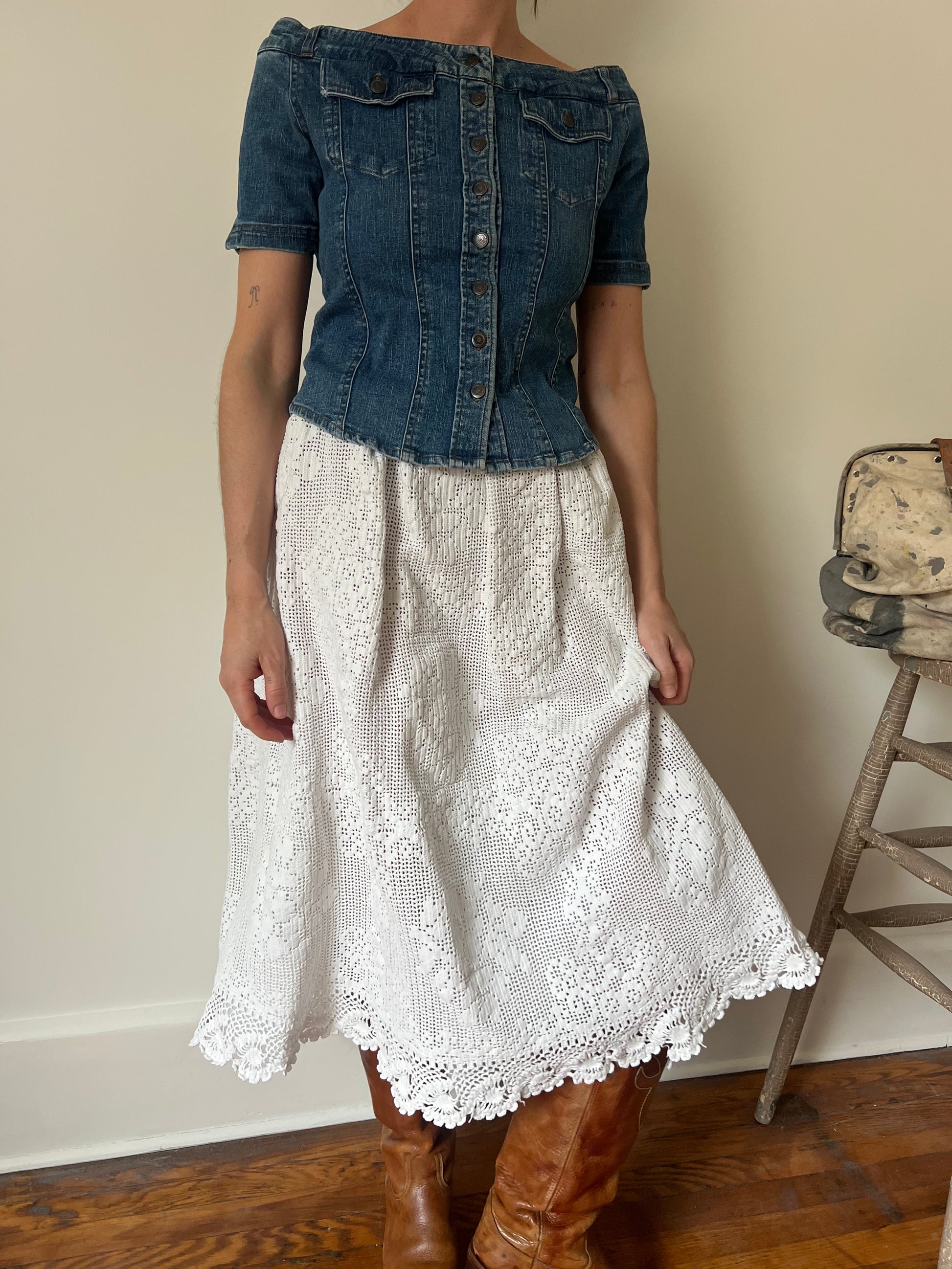 Stretchy y2k denim off the shoulder top!